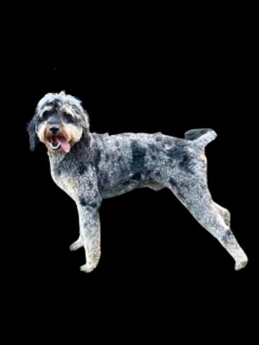 Cowboy is an 45lb f1 male aussiedoodle , blue Merle phantom in color and stands 23 in shoulder height and 30 inches at the top of her head. Stevie is standard size poodle 50lbs chocolate phantom that stands at the shoulder at 24inches and 32inches at the top of his head.